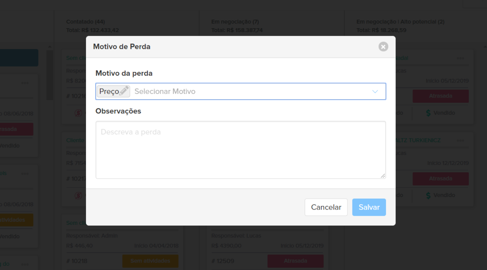 Acessar os motivos de perdas e identificar quais estão gerando mais prejuízos é fundamental para que sua loja possa corrigir os erros e ter uma melhor performance nas vendas.