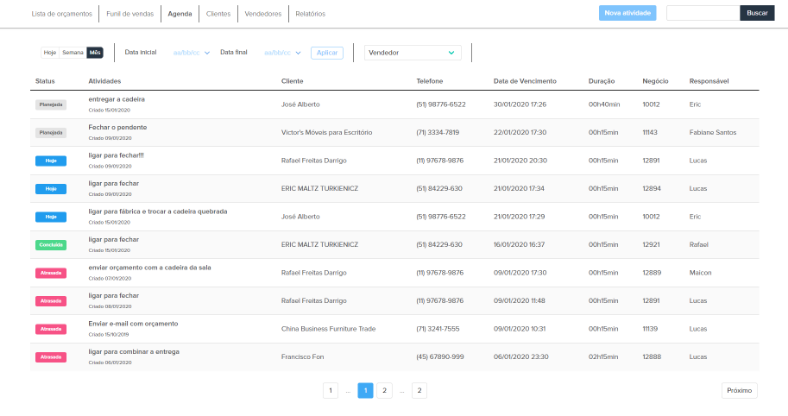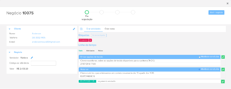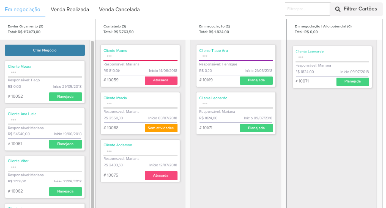 Ao registrar um histórico detalhado de cada atendimento, nosso funil de vendas se torna uma ferramenta poderosa, e permite que você atenda cada cliente de forma especial.
